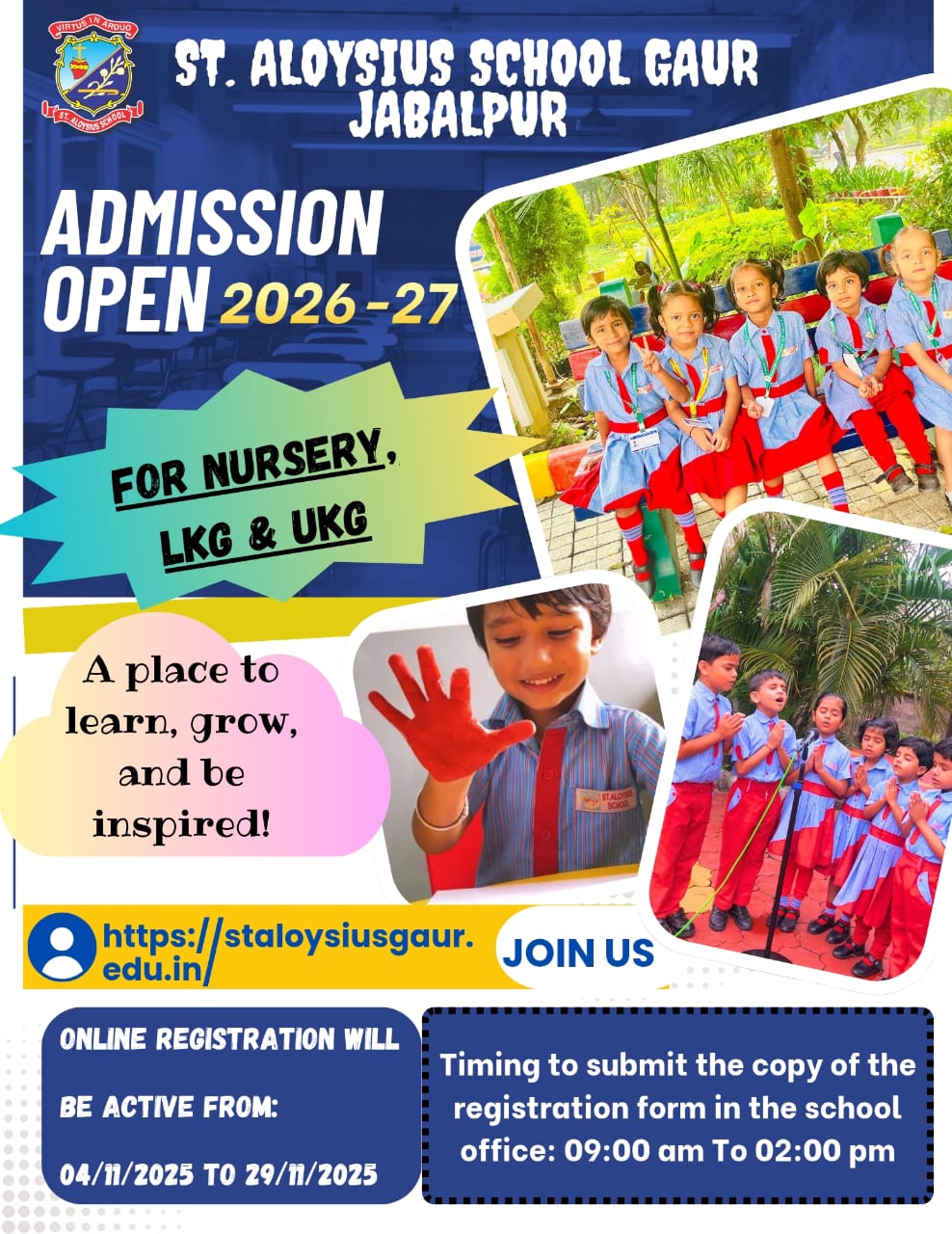 ST. ALOYSIUS SCHOOL, SAIT CAMPUS, GAUR is owned and established by the Catholic Diocese of Jabalpur and it is administered by the Diocese through the Jabalpur Diocesan Educational Society, a registered body under the Society of Registration Act M.P. in 1968. St. Aloysius School Gaur had its humble beginning in the year 2015. The school was started in the building of St. Aloysius Institute Of Technology. The inauguration ceremony of this new branch was done by Rt. Rev. Bishop Gerald Almeida, Bishop of Catholic Church of Jabalpur. In March 2014 LKG was opened with 29 students in St. Aloysius School, Cantt Section D was allotted to these students, after a year it was shifted to SAIT Campus Gauraiya Ghat Fr. Thankachan Jose was the principal from 16 March 2014 to April 2016.